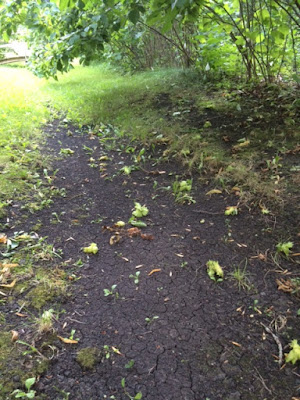 | Of course it was the larger hazelnuts that fell off in the high winds. They aren’t quite ripe yet. Still another couple weeks to go. |