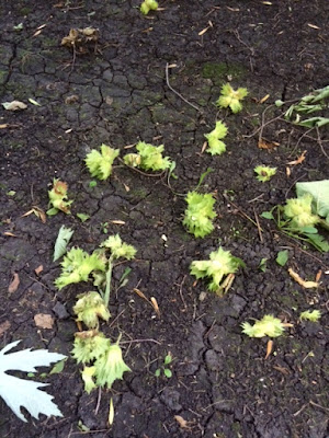 | The wind broke off some whole branches with hazelnuts on. |