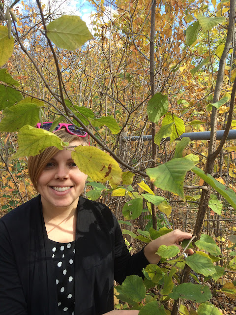 The picture on the left is Kelsey at NDSU research arboretum near Absaraka, with her hazelnuts research for NDSU. The picture on the right is Kelsey at Riverbend Hazelnuts research area.