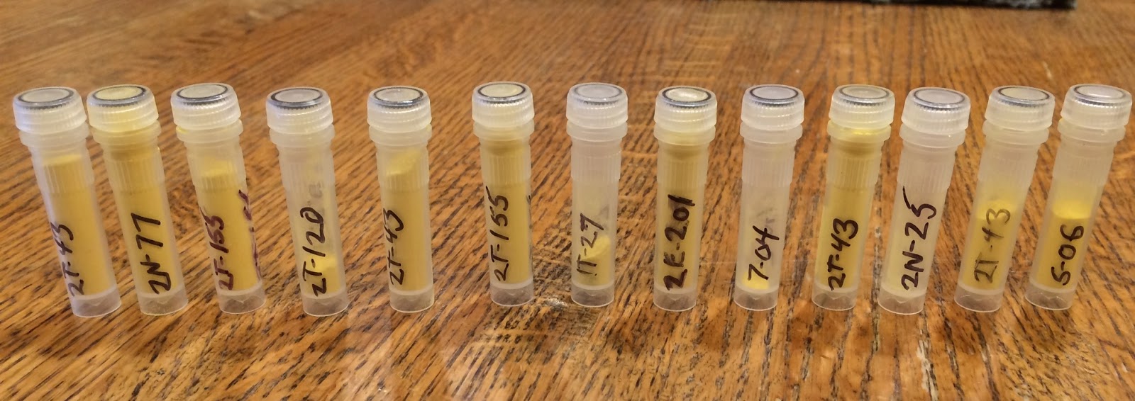 Here are the vials from some of the best selected plants.