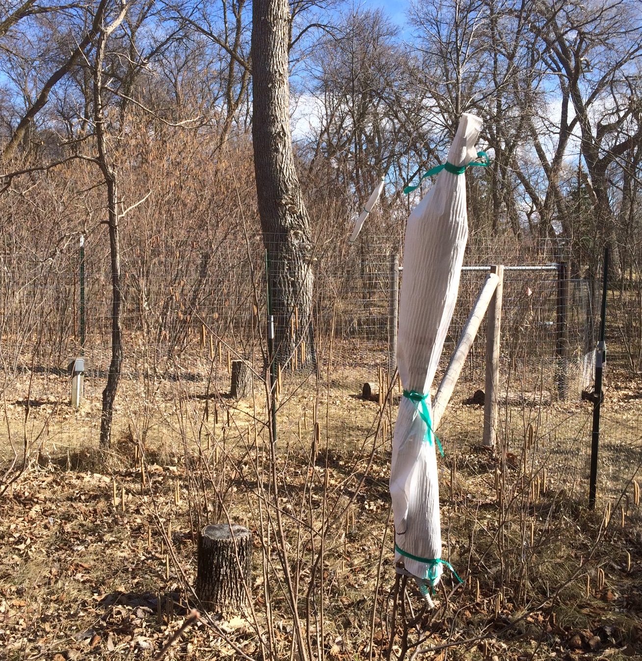 Part of the hand pollinating process in the spring is to remove the catkins from the plant that you have selected for the breeding program and cover with a bag.