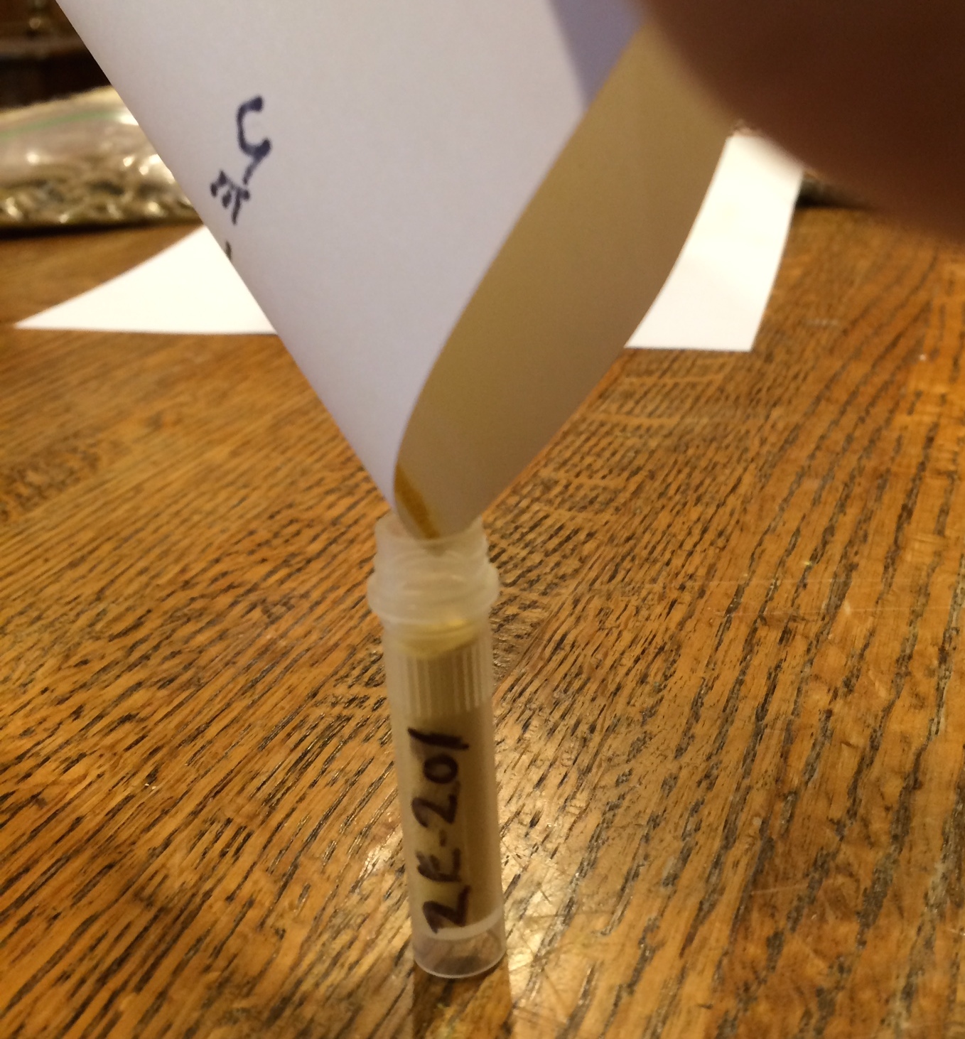 To hand pollinate these flowers I place a fingertip over the inverted vial to coat the end of the finger.