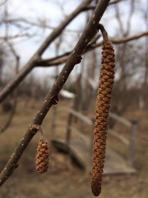 In this picture the catkin has grown to twice its length, and is about to release the pollen.