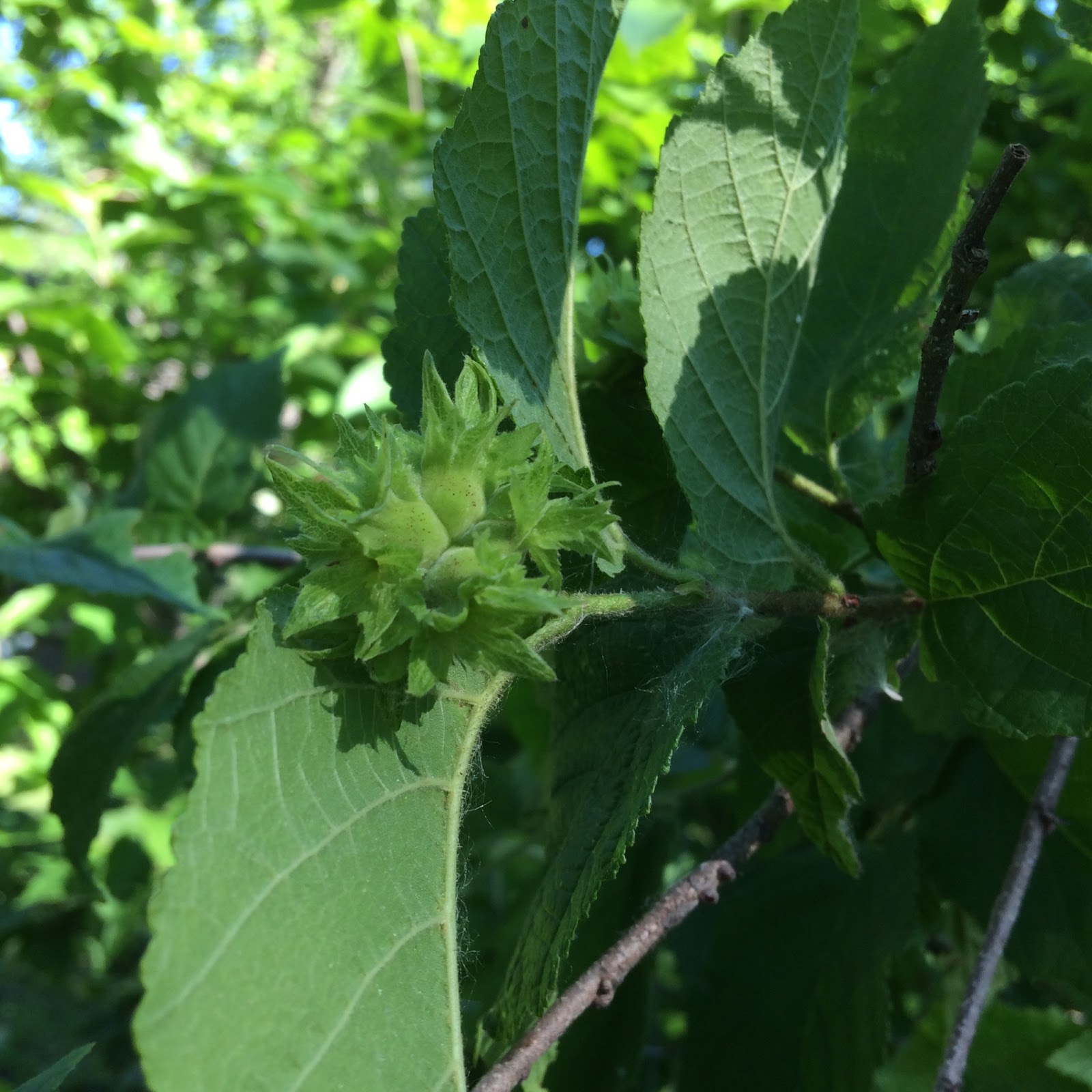 These hazelnut clusters are a wild varity from northern Minnesota. In this picture you can see the husk is very thick and encloses the nut.  This makes it hard to dry down and remove the nut.