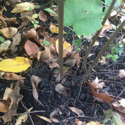 After the hog ring and rooting hormone I layer the area around the plant with a foot of compost. In this picture I’ve done this to 3 of the immature stems.