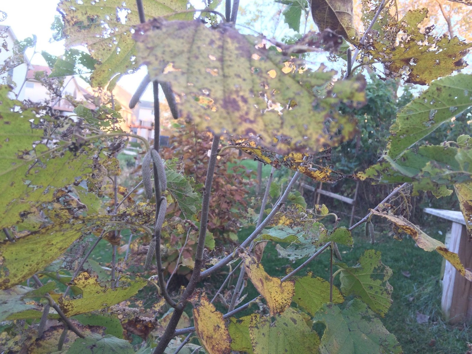 This is another plant that was badly damaged by Japanese beetles. On this plant the catkins are in sets of 1 & 2.