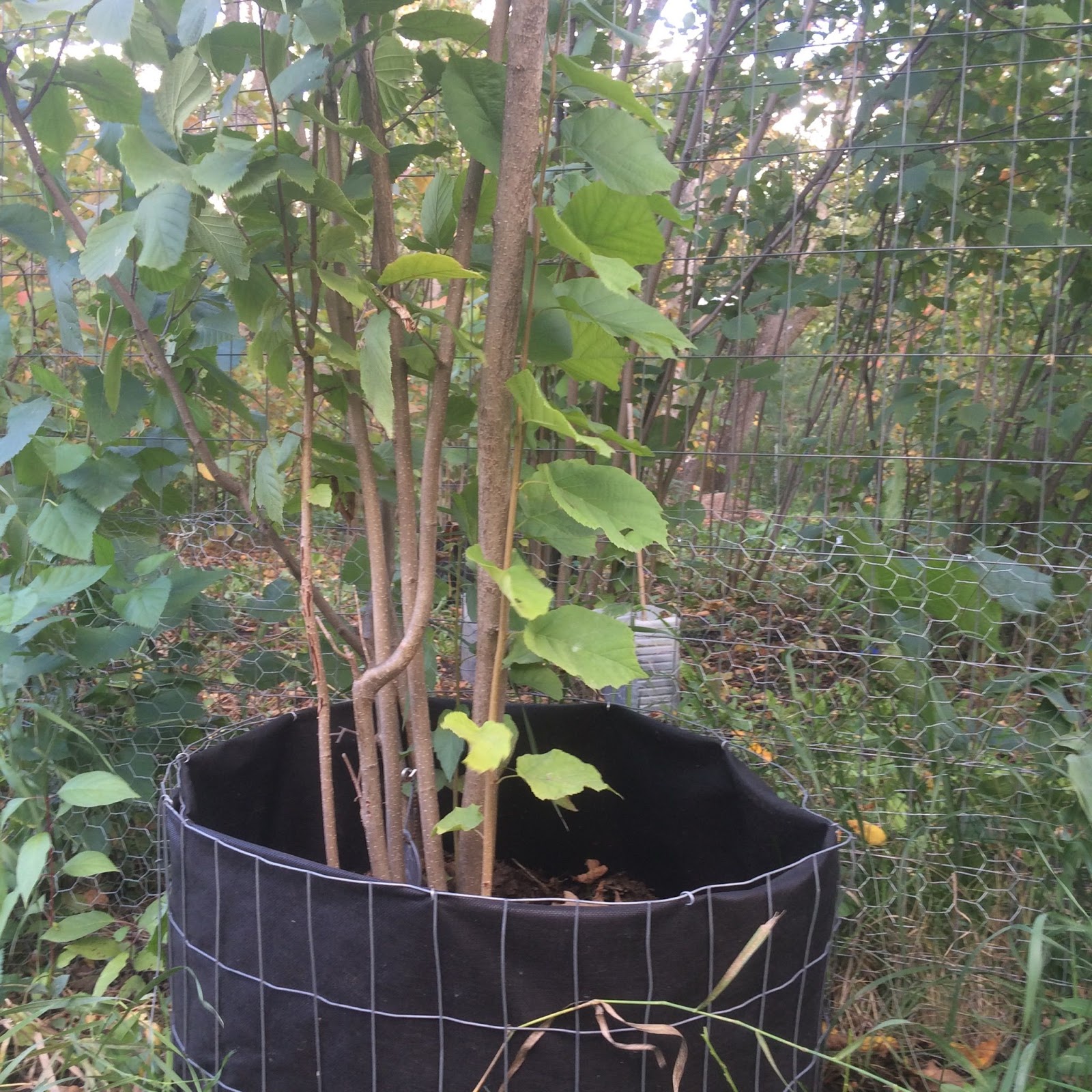 This is one of my hazelnuts I planted 4 years ago that is over 5 feet high located at my son’s house in Lino Lakes, MN. This plant has not produced any nuts yet but should have this year.