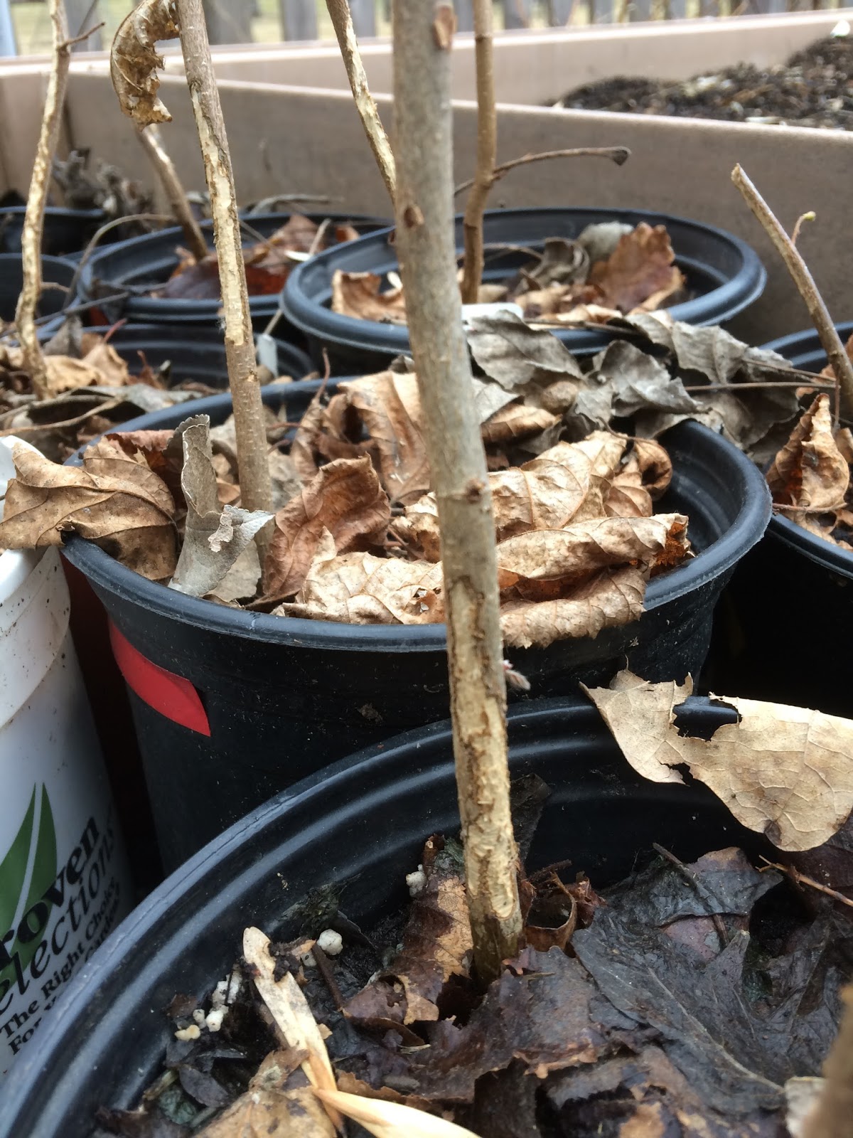 When the snow melted the past few days I noticed a lot of damage from mice. I’ve never had problems with mice before. They must be mini beavers. I might move them to a better location this fall where I can monitor the plants all winter. I think the leaves that blow in and the snow cover made a perfect home for the little critters.