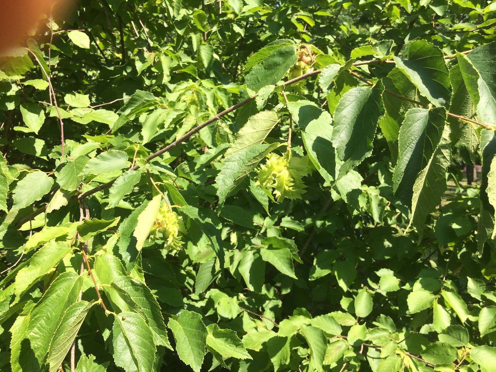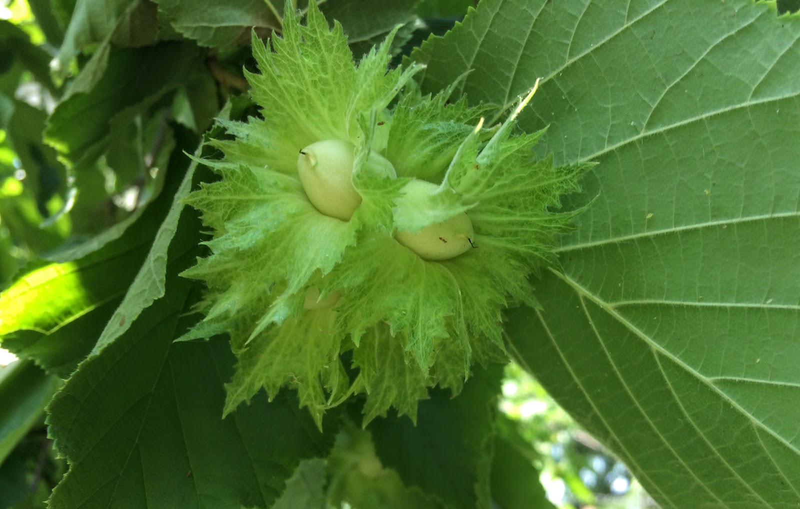 This leafy husk hazelnut is easy to pick and dries down fast to release the nut. I like these because they can be picked and laid out on drying racks in a safe place away from various kinds of rodents.