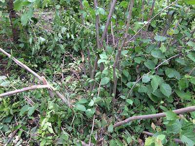 After a bad storm I found 3 ash trees down in this part of my orchard. I was sure wondering how many hazelnut plants are under those ash trees.
